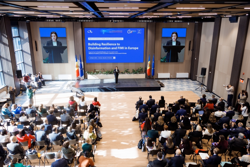 Președinta Republica Moldova, Maia Sandu, a participat la conferința internațională „Alfabetizarea Media și Integritatea Informațională: Consolidarea rezilienței împotriva dezinformării și FIMI în Europa”, desfășurată la Chișinău, unde a vorbit despre noile riscuri care afectează democrațiile europene.